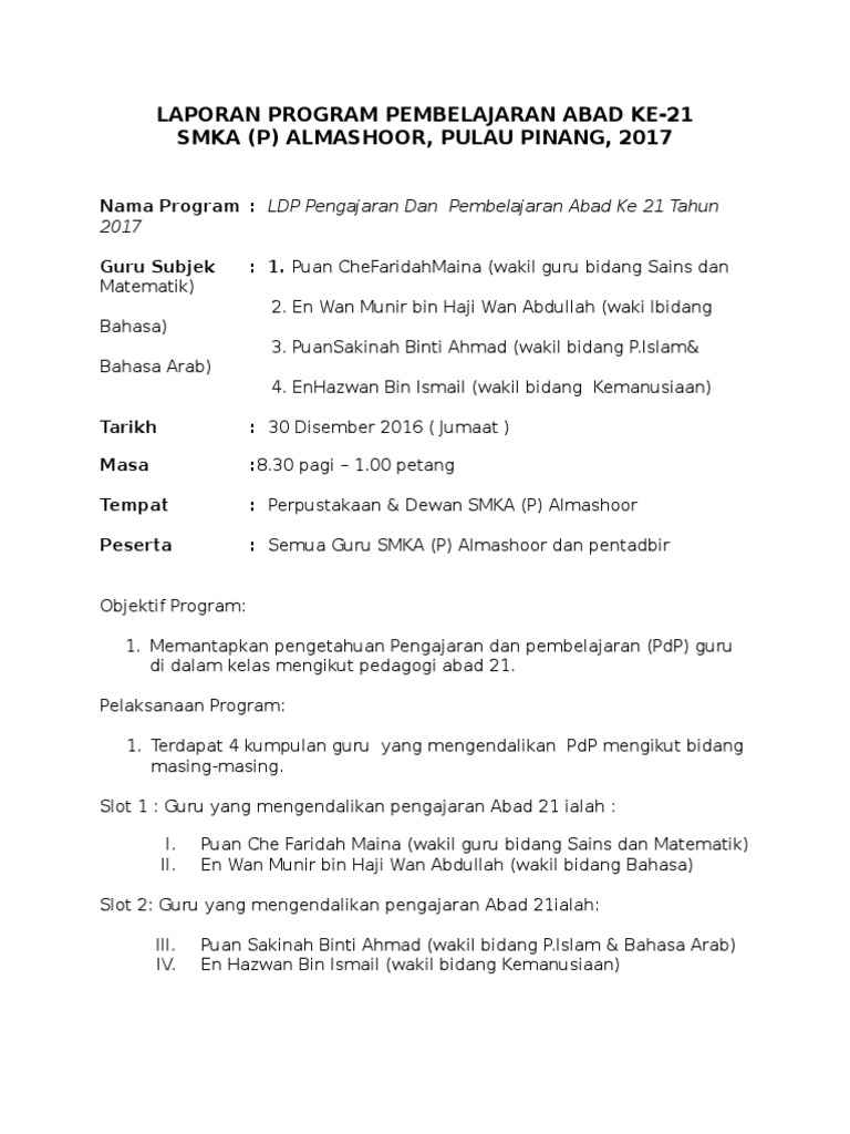Laporan Program Pembelajaran Abad Ke 21 Pdf