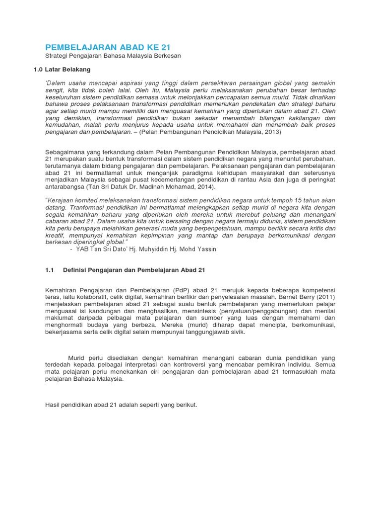 PENGAJARAN DAN PEMBELAJARAN ABAD KE-21 azian binti abd rahman SISC Bahasa Inggeris Menengah PPD Mersing 2. Pengajaran dan pembelajaran abad ke 21 1. Kssr semakan january 19 2021 december 4 2020 by tchercollection sistem pengajaran dan pembelajaran pada abad ke 21 kini memberi tumpuan kepada tiga aspek utama iaitu kemahiran aplikasi teknologi penguasaan pedagogi dan kepakaran dalam ilmu kandungan kurikulum.